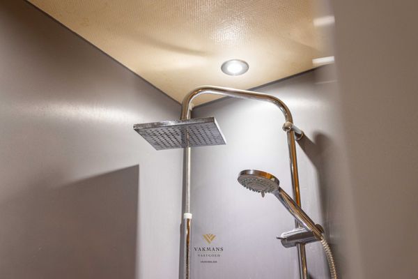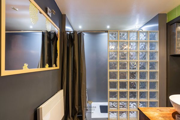 De badkamer met douche, lavabo en toilet is ook op het gelijkvloers. Verder is er nog een veranda naast de keuken en een extra grote praktische berging dat eventueel nog een extra slaapkamer kan zijn.